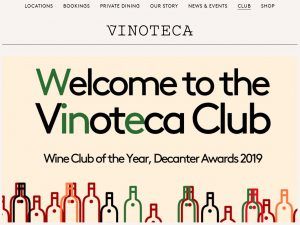 O mulțime de diversitate în această categorie - o bucurie de a judeca. În calitate de finalist, Honest Grapes este un comerciant și club de vinuri cu saci de caracter și o senzație dinamică, care merită să fie cunoscut. Clubul de vinuri Vinoteca este un spin-off de la barurile și magazinele sale de vin din Londra. Lista mică este aleasă în mod strălucit. Abonamentele sunt destul de preț și oferă un sentiment real de descoperire, iar potrivirea mâncării este un fort (dacă nu este surprinzător).
